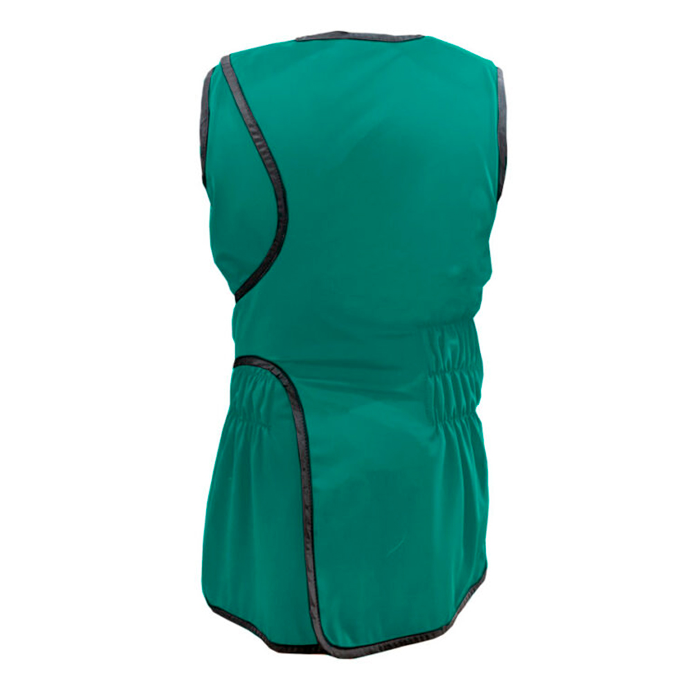 El elástico retráctil desplaza el peso desde los hombros hasta las caderas, mientras que los cierres de velcro con tres lengüetas, proporcionan la solución fácil para colocarse y quitarse el delantal de una sola pieza. El modelo Estándar viene con bolsillo en el pecho.