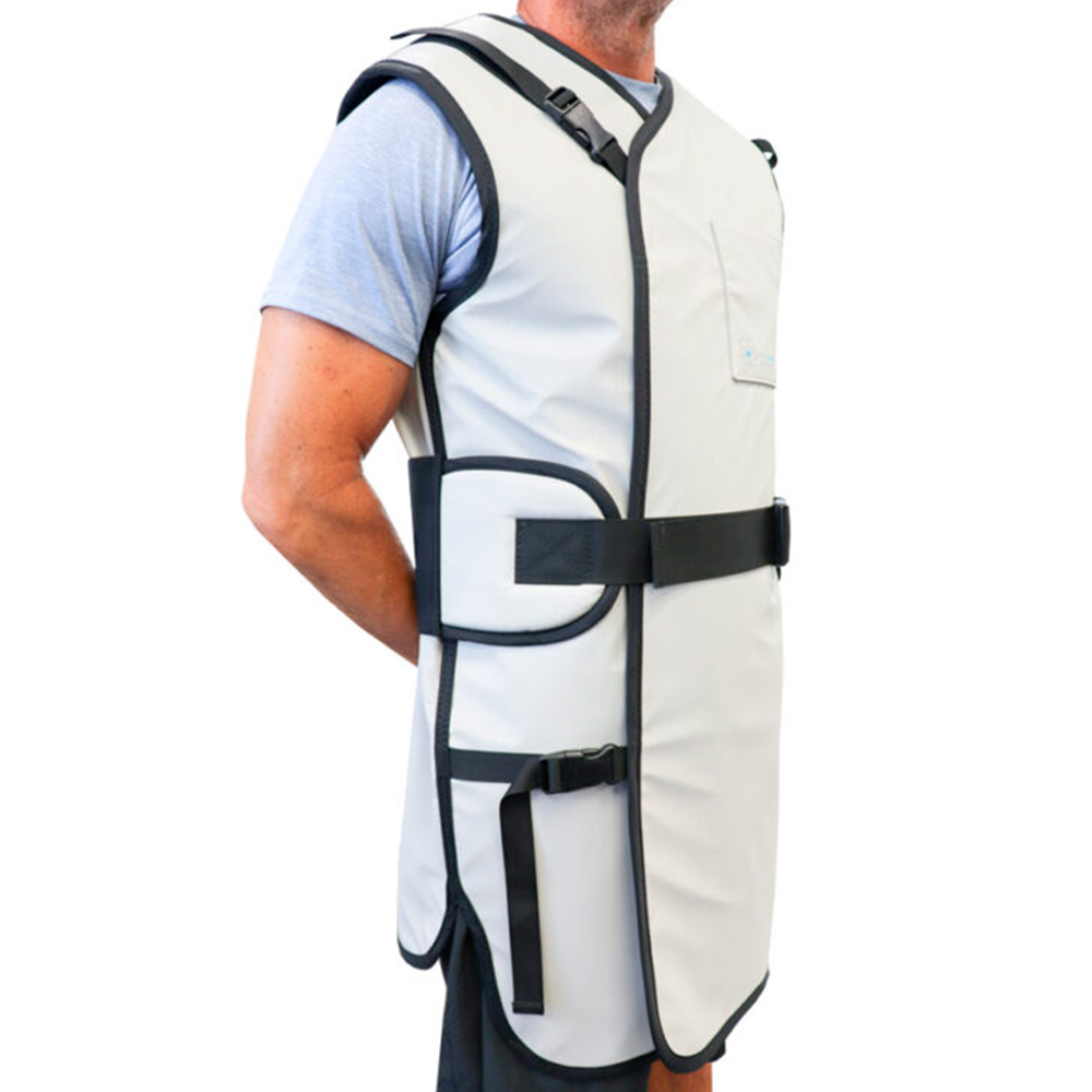 Este diseño transfiere el peso de los hombros a las caderas con la ayuda de un cinturón de soporte lumbar de 6“. El delantal de descanso para la espalda “Wrap Bround” presenta cierres de velcro y hebilla, una cos- tura lateral con velcro para libertad de movimiento, y LE de 1.00 mm cuando los paneles superpuestos están enganchados. Los hombros con acolchado doble para mayor confort y el bolsillo en el pecho son características estándar.